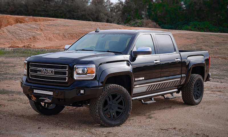 Though the GMC Sierra and Chevrolet Silverado share many of the same components the dynamic lines of the GMC posed a challenge to match design language in plate steel. Considerations were made to ensure all electrical and mounting hardware were compatible regardless of trim and option level of starting chasis.